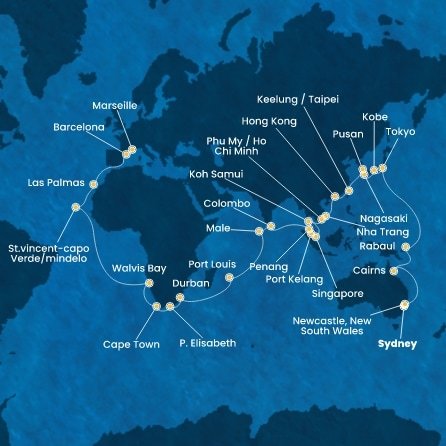 - The passenger is solely responsible for complying with the entry conditions of all countries visited. Conditions may change at any time.