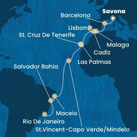 | 18. | 19.11.2026, Čt | 18. Maceio / Brazílie | 07:00 | 13:00 |