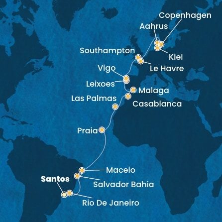 | 16. | 19.04.2027, Po | 16. Casablanca / Maroko | 06:00 | 18:00 |