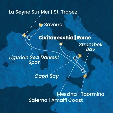 | 1. | 25.05.2027, Út | 1. Civitavecchia / Itálie (Nalodění) | --:-- | 19:00 |