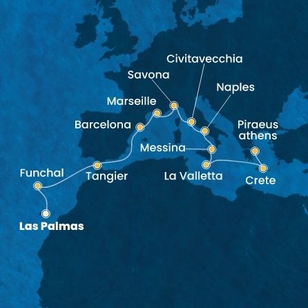 | 1. | 07.05.2027, Pá | 1. Las Palmas (Gran Canaria) / Španělsko (Nalodění) | --:-- | 20:00 |