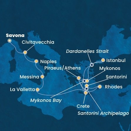 | 11. | 24.05.2027, Po | 11. Mykonos / Řecko | 15:00 | 23:00 |