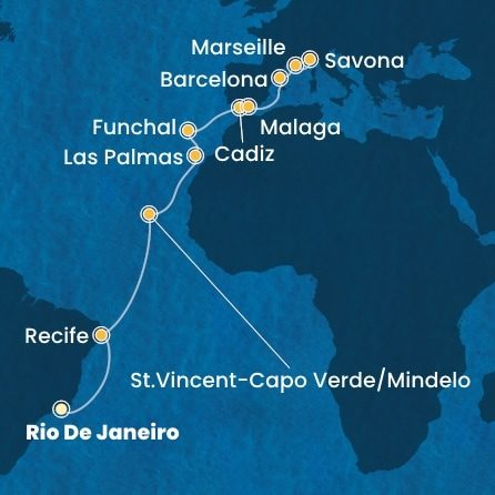 | 9. | 16.04.2027, Pá | 9. Mindelo (Sao Vincente) / Kapverdy | 08:00 | 18:00 |