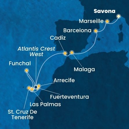 | 14. | 25.11.2026, St | 14. Lanzarote / Španělsko | 08:00 | 18:00 |