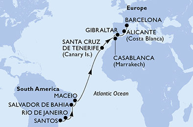 - Body do věrnostního programu MSC Voyagers Club (od 800 bodů za plavbu).