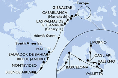 - Body do věrnostního programu MSC Voyagers Club (od 800 bodů za plavbu).