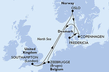 Velká Británie, Norsko, Dánsko, Belgie ze Southamptonu na lodi MSC Meraviglia