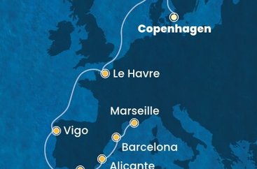 Dánsko, Norsko, Francie, Španělsko z Kodaně na lodi Costa Diadema