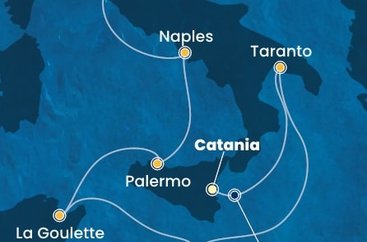 Lodě kotví v přístavu Catania Cruise Port na adrese: Cruise Terminal Sporgente Centrale - porto, 95121 Catania – Italy. Terminál výletních lodí v sobě spojuje technické kvality a vynikající služby v nezapomenutelném prostředí.