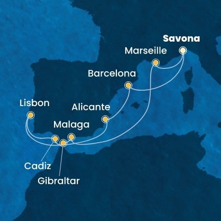 | 7. | 08.10.2027, Pá | 7. Gibraltar / Velká Británie | 08:00 | 20:00 |