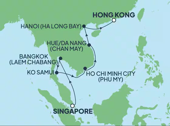 - Ubytování před plavbou: 2 noci v 3* hotelu v Singapuru se snídaní.