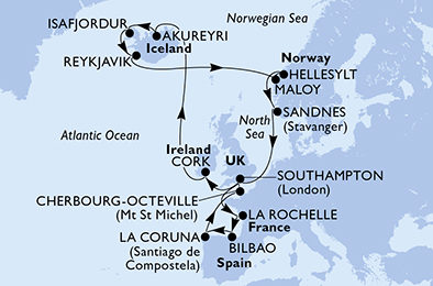 | 7. | 7. Isafjordur / Island | 07:00 | 19:00 |