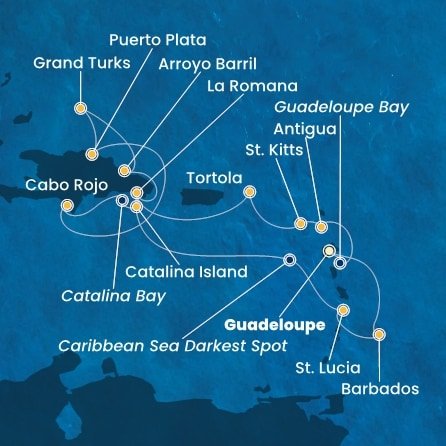 | 16. | 07.01.2027, Čt | 16. Pointe-à-Pitre (Guadeloupe) / Zámořský departement Francie (Vylodění) | 09:00 | --:-- |