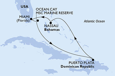 | 2. | 15.11.2027, Po | 2. Ocean Cay MSC Marine Reserve (Ocean Cay) / Bahamy | 08:00 | 18:00 |