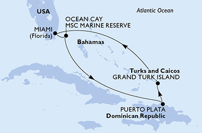 | 2. | 29.11.2027, Po | 2. Ocean Cay MSC Marine Reserve (Ocean Cay) / Bahamy | 08:00 | 23:59 |