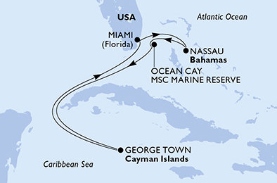 | 3. | 07.03.2028, Út | 3. Ocean Cay MSC Marine Reserve (Ocean Cay) / Bahamy | 08:00 | 18:00 |