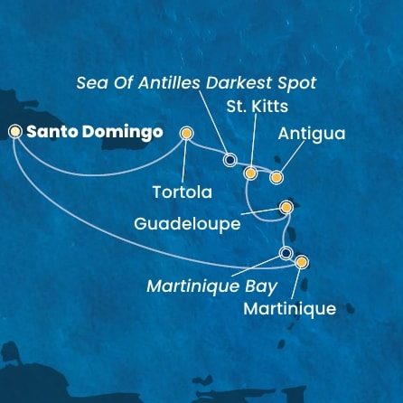 | 1. | 1. Santo Domingo / Dominikánská republika (Nalodění) | --:-- | 23:59 |