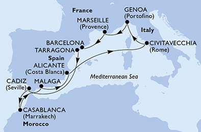 | 4. | 21.12.2027, Út | 4. Casablanca / Maroko | 06:00 | 20:00 |