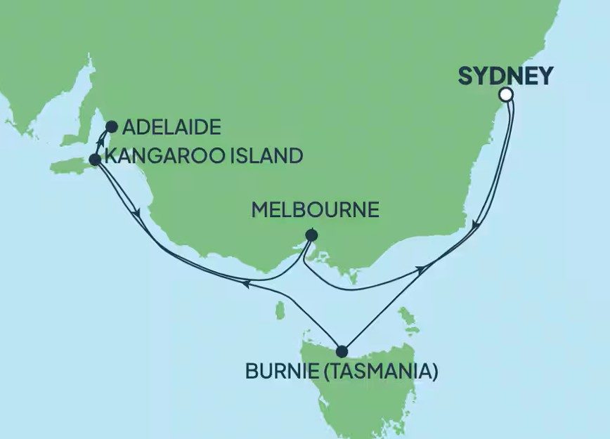 - Letecká doprava v Economy class z Prahy do Sydney a ze Sydney do Prahy, transfery z letiště na hotel, z hotelu do přístavu a z přístavu na letiště v Sydney.