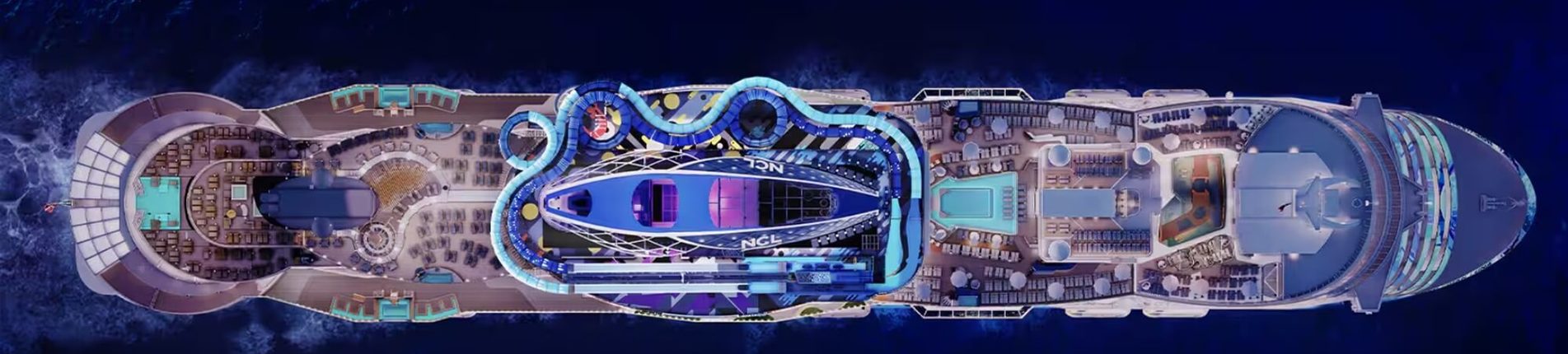 - Upozorňujeme, že kajuty s balkonem 9226, 10224, 10226, 10228, 11222, 11224, 11226, 12220, 13218, 14200, 15206, 16200 mají omezený výhled z důvodu umístění skluzavky.