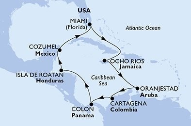 | 7. | 7. Cartagena de Indias / Kolumbie | 10:00 | 18:00 |