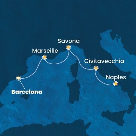 | 1. | 29.05.2026, Pá | 1. Barcelona / Španělsko (Nalodění) | --:-- | 17:00 |