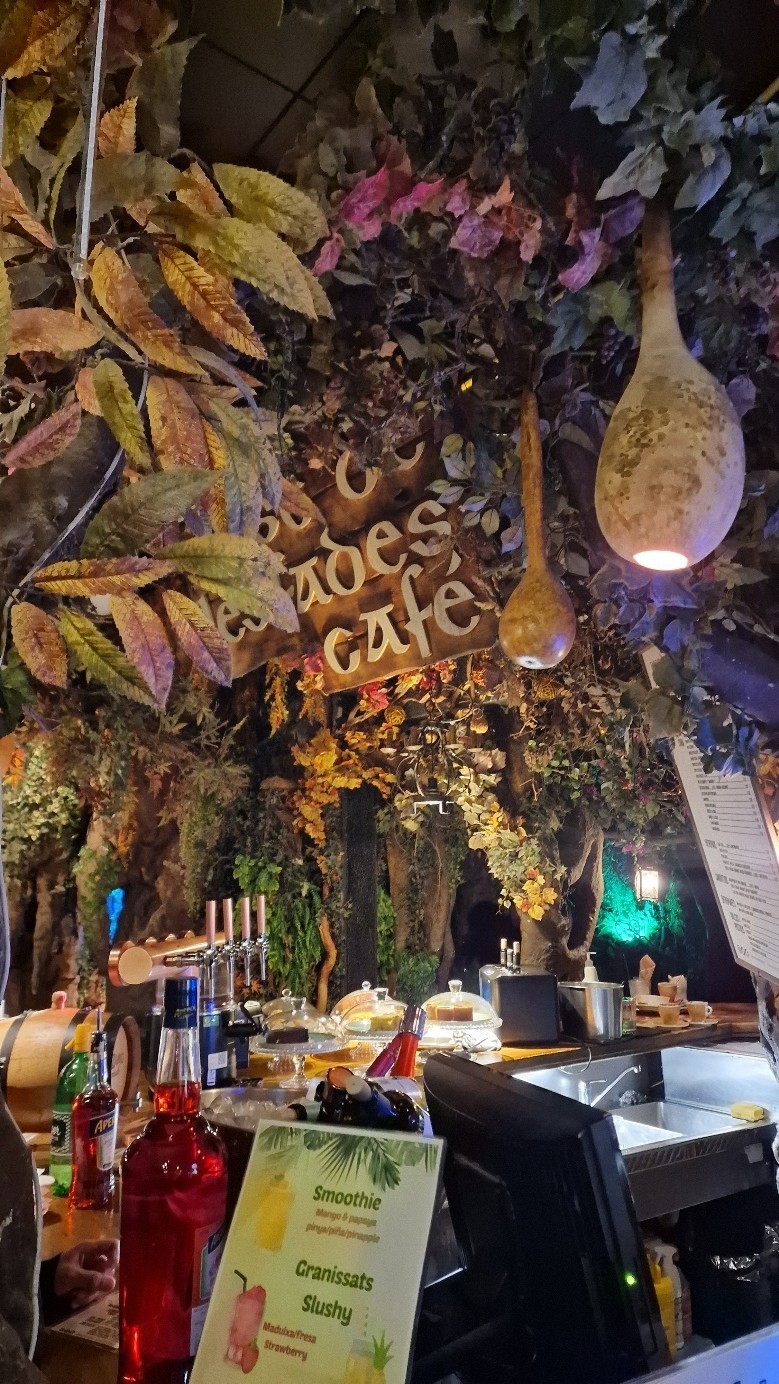 Procházku jsme zakončili opět na La Ramble u hotelu. Tam jsme se mohli rozhodnout, zda si půjdeme odpočinout na pokoj, nebo budeme pokračovat v objevování centra po vlastní ose. Neodolali jsme a vybrali si skrytou kavárnu s úžasným tapas, netradiční výzdobou a samozřejmě výbornou sangrií. Bylo to jedno z těch malých, ukrytých podniků s uměleckou hodnotou, kde se přírodní prvky mísily s velmi neotřelým designem. Ideální tečka za prvním dnem.